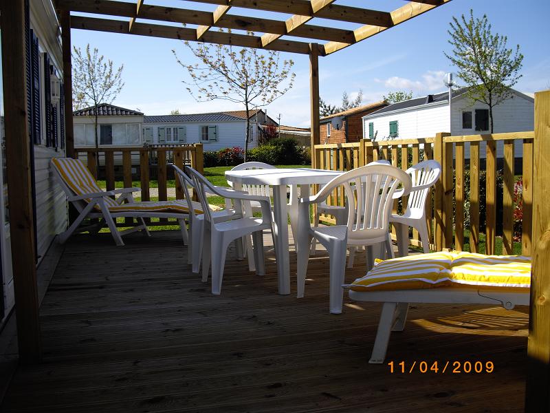 le mobil-home est sur une parcelle de terrain entouré arbustre avec emplacement parking voiture |