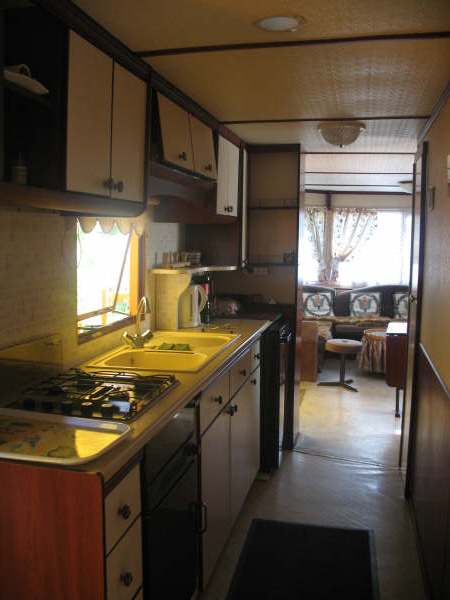mobilhome tout confort-cuisine équipée-vaisselle courante- 4 feux gaz- four- frigo-cafetière et bouilloire électriques-fer et table à repasser. |