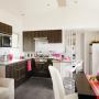 Cuisine très agréable à vivre avec retour bar / plan de travail et tabourets réglables en hauteur.